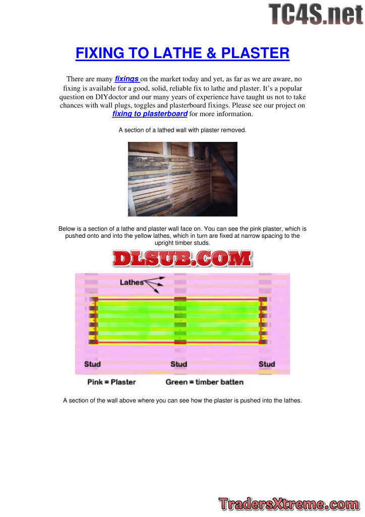Fixing To Lathe And Plaster - JPG Image File