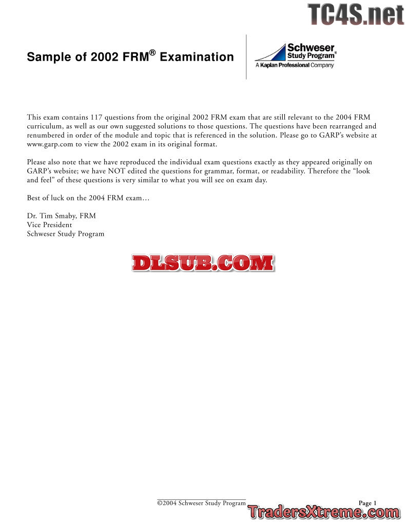 Frm 2002 Frm Examination By 2004 Schweser Study Program With Answers