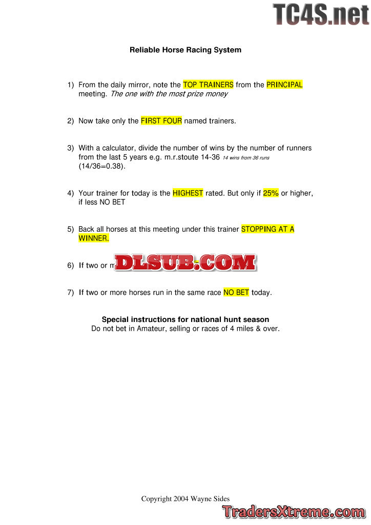 Reliable Horse Racing System - JPG Image File