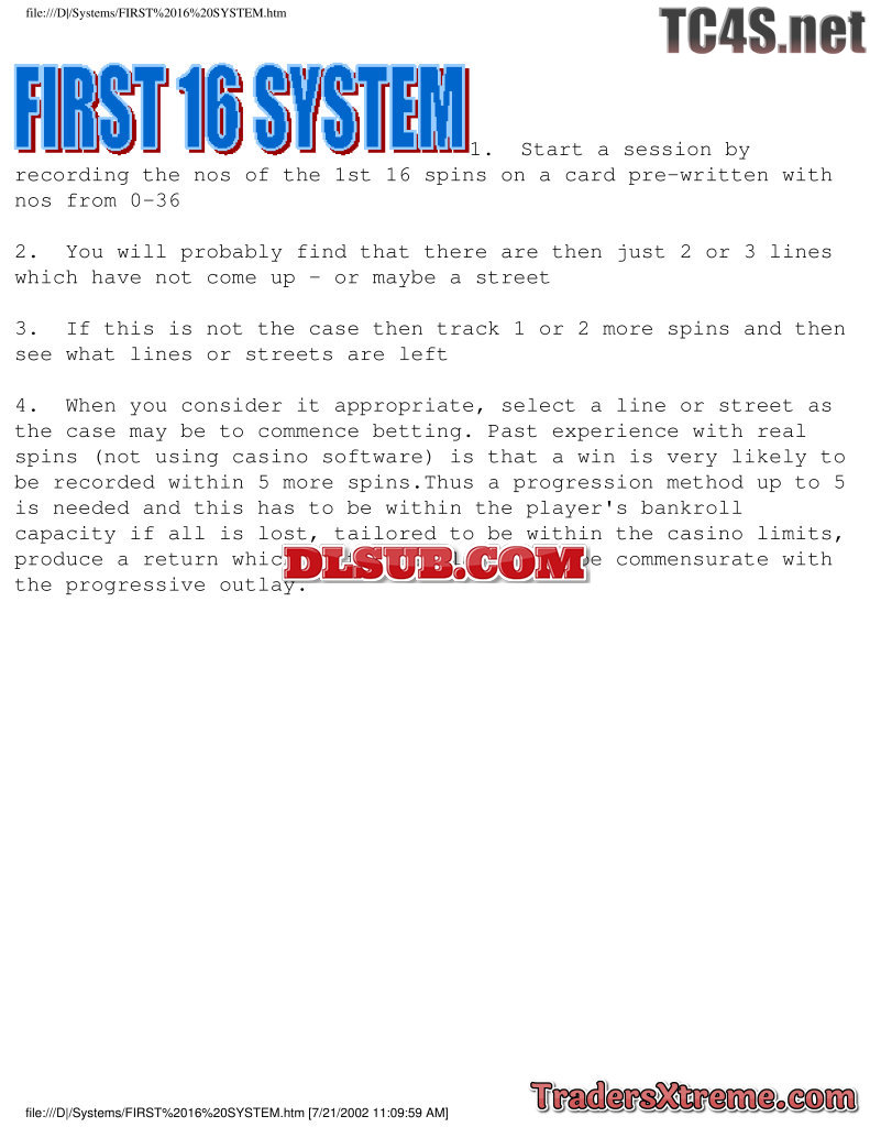 First 16 System For Roulette