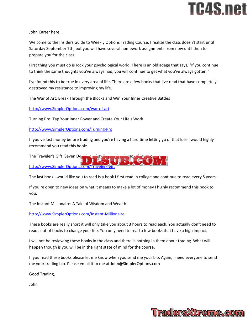 John Carter Simpleroptions Insiders Guide To Trading Weekly Options Strategies Class Usd 749